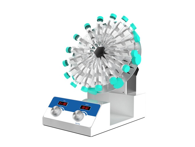 旋转混合仪用于样品的组织培养,萃取,测定沉降率(包括各种血样的化学测定),如:血样混合、放射免疫、葡萄糖、蛋白质、DNA、细胞、尿液、酶等湿化学分析,在生化、生物、细胞、免疫、化学、动植物分析、临床实验等诸多方面都有广泛应用。其主要特点是它们能以温和的方式混合,以避免细胞破裂匀速地长时间连续混合,转盘的倾斜角度可在0~90°范围内调节。还可根据需要放置在恒温箱中。